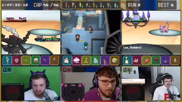 12:32:39Es wird festgestellt, dass das Passwort aus vier Ziffern besteht, wobei die letzte Ziffer eine 9 ist. Es wird vermutet, dass jeder Spieler ein anderes Passwort hat. Ein Hinweis zum Passwort ist der Name eines weißen Drachen-Pokémon. Es wird diskutiert, ob nur Zahlen benötigt werden. Es wird überlegt, ob man alle Trainer gemeinsam bekämpfen soll. Es wird vermutet, dass das Passwort Kyurem ist. Es wird ein Setup mit Donnerwelle und Elektroball vorgeschlagen. Es wird festgestellt, dass man alle besiegen muss und es kein Entkommen gibt. Die erste Ziffer ist eine 9. Es gibt ein Problem, da das Rätsel nicht mehr funktioniert. Es wird diskutiert, ob der Grabenchef gefährlich ist und welche Attacken er hat. Es wird überlegt, welches Pokémon man einsetzen soll, wobei die meisten Glass Cannons sind. Es wird überlegt, ob man Voltwechsel machen soll. Der Gegner setzt Schmarotzer ein, was sehr effektiv ist. Es wird überlegt, welche Attacke man einsetzen soll. Es stellt sich heraus, dass Kramchef öklig ist und die ganze Zeit Zahlen bekommt, während andere nur gesagt bekommen, dass das Passwort ein Drache ist.
