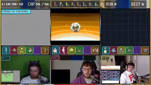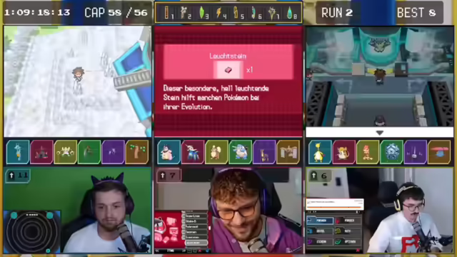 15:42:38Die Gruppe setzt ihre Suche nach Items und einem neuen Encounter fort, wobei sie sich durch ein Labyrinth aus Gängen und Trainern bewegt. Es wird festgestellt, dass Top-Schutz aufgebraucht ist, was die Navigation erschwert. Die Gruppe findet eine TM für Spukball, ist sich aber unsicher, wem sie diese beibringen soll. Es wird ein neuer Encounter gefunden, Linfu, über dessen Stärke diskutiert wird. Es stellt sich heraus, dass es sich um einen Reroll handelt, was die Enttäuschung erhöht. Die Gruppe plant, wie sie mit dem nächsten Encounter umgehen soll, und es wird überlegt, den Meisterball einzusetzen. Es wird ein neuer Encounter gefunden, Keifel, der jedoch aufgrund seiner Typenkombination (Boden/Eis) eine Herausforderung darstellt. Es wird überlegt, wie man Keifel fangen kann, und es werden verschiedene Strategien diskutiert, darunter der Einsatz von Schlafpuder und Superzahn. Die Gruppe tauscht sich über die Typenkombinationen ihrer Pokémon und deren Schwächen aus. Es wird beschlossen, Mamutra zu nennen, und die Namensgebung wird humorvoll diskutiert.