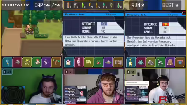 10:22:12Die Gruppe diskutiert über vergangene Fehler und versucht, daraus zu lernen, um zukünftig bessere Entscheidungen zu treffen. Es wird überlegt, welche Pokémon welche Attacken erlernen sollen, um das Team optimal aufzustellen. Dabei stellt sich das Problem, dass keines der Pokémon Surfer oder Fliegen beherrscht, was die Navigation erschwert. Die Gruppe sucht nach Lösungen, um dieses Problem zu beheben und den Spielverlauf zu optimieren. Es wird auch über die Bedeutung von Teamzusammenhalt und gegenseitiger Unterstützung gesprochen. Die Gruppe versucht, sich gegenseitig zu motivieren und zu ermutigen, um auch in schwierigen Situationen bestehen zu können. Es wird auch über die Stärken und Schwächen der einzelnen Pokémon diskutiert und wie diese am besten eingesetzt werden können. Die Gruppe tauscht sich über mögliche Attacken und deren Auswirkungen aus und versucht, alle Eventualitäten zu berücksichtigen und eine Strategie zu entwickeln, die sowohl offensive als auch defensive Elemente beinhaltet. Ziel ist es, die gegnerischen Pokémon zu besiegen und den Kampf erfolgreich zu bestehen.