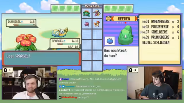 01:23:59Nach der intensiven Dokumentation über Eichmann wechselt der Stream zu einem anderen Thema: der Vorbereitung auf eine Hardcore Pokémon Nuzlocke Challenge im Spiel Emerald. Streamer und Chat tauschen Strategien aus, wie man an Items, Geld und wertvolle Pokémon kommt. Besonders die Nutzung der Attacke „Raub“ und das Klauen von Nuggets von reichen Trainern wird als effektive Methode zum Farmen von Geld diskutiert.