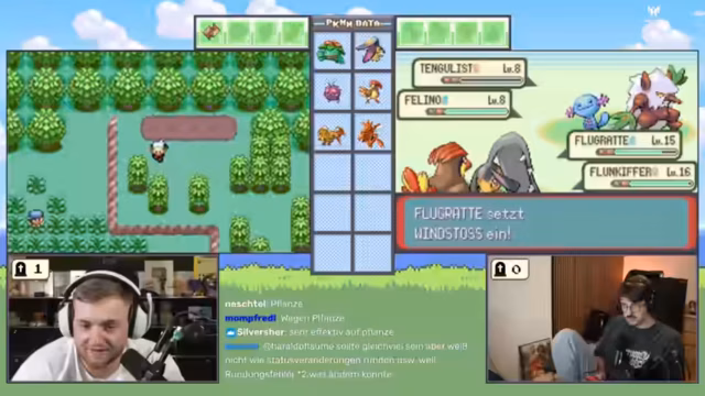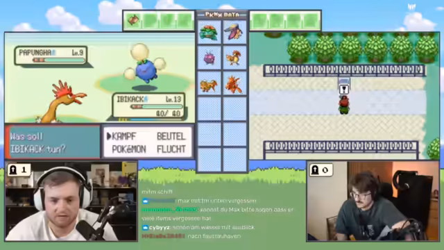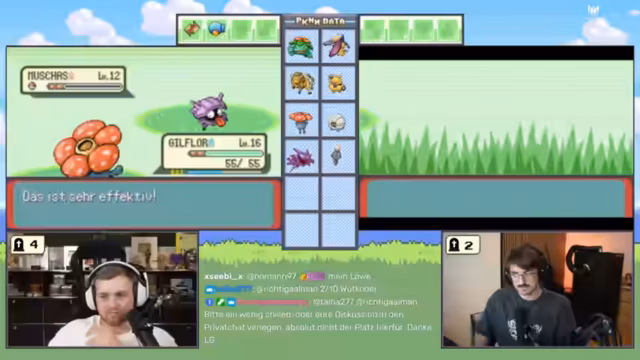 02:22:33Die Pokémon-Challenge beginnt mit der Charakter-Erstellung und der Wahl der Starter-Pokémon. Nach einigen technischen Vorbereitungen und dem Überwinden der ersten Hürden wird das Starter-Pokémon Pisaflor gewählt. Der erste große Rückschlag ereignet sich im Kampf gegen den Rivalen Mogelbaum. Das Mew, das der Streamer hatte, wird durch einen Teamwipe durch das Pokémon Scaraborn eliminiert, was durch eine vorherige Habitat-Zerstörung durch Mogelbaum ausgelöst wurde. Der Streamer verliert dadurch Glumanda.