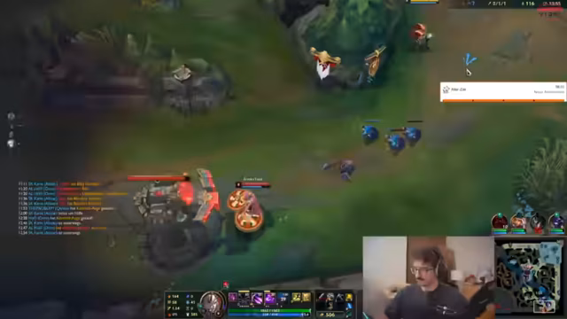 07:20:37Das Spiel beginnt mit einem taktischen Swap. Der Streamer tauscht mit Kuba auf die Toplane, da der Gegner einen Mordekaiser Jungle pickt, was die Toplane betreffen könnte. Kuba wählt daraufhin Seraphine. Die Bot-Lane, bestehend aus Caitlyn und Alistar, erhält die klare Anweisung, aggressiv zu pushen, um den Turmdruck aufrechtzuerhalten, während die Toplane vorsichtig farmt. Die Kommunikation zielt darauf ab, den gegnerischen Jungler auf der Map zu tracken und sich gegenseitig über deren Positionen zu informieren.