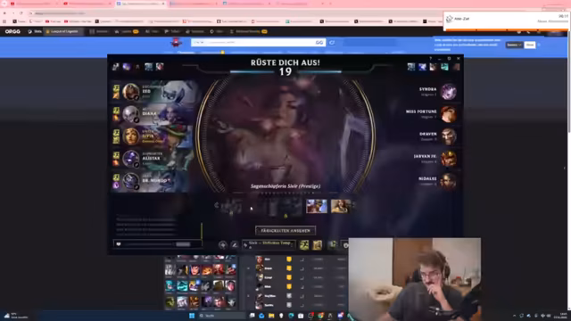 02:30:25Der Streamer kündigt an, das Spiel auf League of Legends zu wechseln, um einem Turnier von Krokoboss beizutreten. Er äußert Bedenken, da sich sein Team unzureichend vorbereitet hat. Nachdem das Team die Rollen verteilt hat (Drangleic, Sane, Mitte, Support), wird geplant, eine Testrunde zu spielen, um die Kommunikation zu üben. Der Streamer nennt potenzielle Champions für seine Rolle als AD Carry, darunter Jinx, Vayne und Sivir.