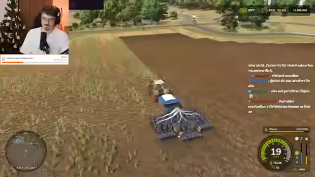 02:55:49Der Stream wechselt zu einer Session des Landwirtschafts-Simulators 25, wo es um die Bewirtschaftung großer Felder geht. Der Streamer und sein Chat planen das Düngen und Säen von Millionen von Weizensamen, was eine logistische Herausforderung darstellt. Es kommt zu humorvollen Diskussionen über Spielmechaniken, die Performance des Servers und die Wahl der richtigen Maschinen. Der Fokus liegt auf dem Aufbau eines landwirtschaftlichen Imperiums und dem Erreichen finanzieller Ziele wie der Eine-Milliarde-Marke.