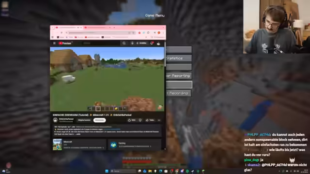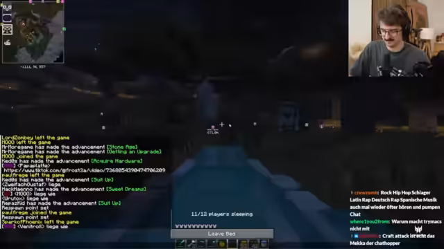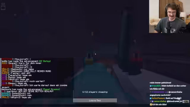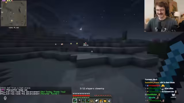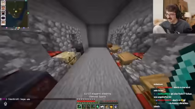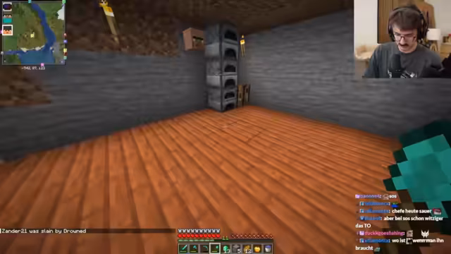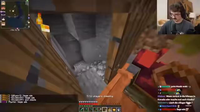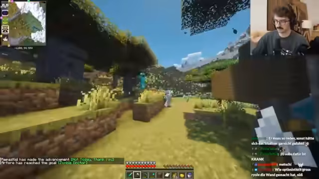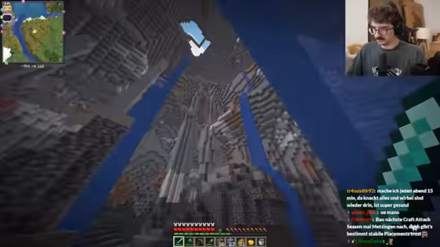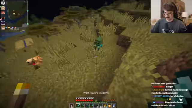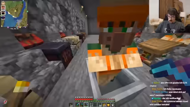 06:16:47Der Streamer ist auf der Mission, einen Zombie für seine Eisenfarm zu fangen. Er erklärt, dass der Zombie in ein Boot gesetzt und mit einem Item versehen werden muss, damit er nicht despawnt. Die Suche nach einem Zombie gestaltet sich schwierig, aber er ist entschlossen, seine Eisenfarm zum Laufen zu bringen. Nebenbei wird über persönliche Fitness und Veränderungen gesprochen. Ein anderer Streamer lobt ihn für seine Entwicklung, Gewichtsabnahme und seinen neuen Koch-Content. Es wird auch thematisiert, dass er alle 40.000 gebannten Zuschauer entbannt hat, was überraschenderweise zu einer positiven Chat-Atmosphäre führte.