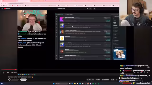 08:44:16Der Streamer und Paul setzen ihre Unterhaltung fort, während Paul seine Bauwerke präsentiert. Es kommt zu spielerischen Drohungen und Neckereien, während sie sich durch die Spielwelt bewegen. Paul versucht, den Streamer zu beeindrucken, indem er ihm sein Haus zeigen möchte. Währenddessen äußert der Streamer Bedenken über fehlendes Essen und die Notwendigkeit, produktiver zu sein, anstatt Sidequests zu verfolgen. Sie treffen auf andere Spieler wie Merle und Heiko, und es kommt zu einer humorvollen Interaktion mit Paul Fresche, der den Streamer als Gast begrüßt. Die Gruppe tauscht sich über ihre aktuellen Spielstände und Bauprojekte aus, wobei Pauls Haus, das er als „Porno-Haus“ bezeichnet, im Mittelpunkt steht. Der Streamer wird von Paul durch sein Haus geführt, das mit einem „Pornobett“ und einem „Wellnessbereich“ ausgestattet ist. Die humorvolle Atmosphäre wird durch die Beschreibungen der Einrichtung und der geplanten Aktivitäten im Haus verstärkt, wobei der Streamer Pauls Bauweise als die eines „Elfjährigen“ kommentiert, der jedoch „richtig was von Spaß versteht“.