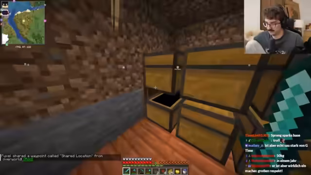 05:52:58Felix fragt nach Cast Crafter, woraufhin der Streamer dessen Wegpunkt teilt, was zu einer humorvollen Auseinandersetzung mit Merle und Heiko führt. Es wird scherzhaft von einem "Beziehungsstreit" oder "Nachbarschaftsstreit" gesprochen, da die Wegpunkte von Merle und Heiko zusammengefasst wurden. Die Diskussion dreht sich auch um die Preise von Verzauberungsbüchern und die Effizienz des Handels mit Villagern. Der Streamer plant, eine eigene Trading Hall zu errichten, um Eisen gegen Emeralds zu tauschen und so seine Verzauberungen zu finanzieren. Er äußert seine Liebe zu Minecraft und Koffein als treibende Kräfte für seine Projekte.