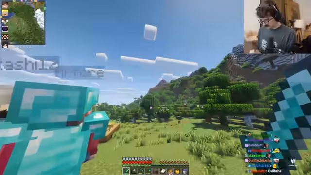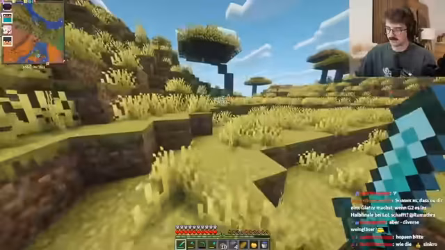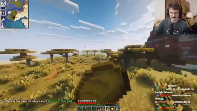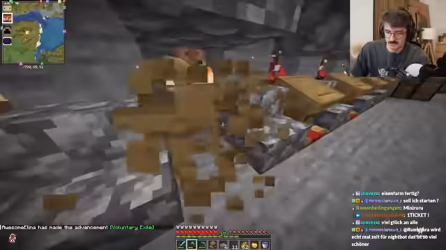 08:14:52Ein Zuschauer schlägt vor, bei Rumathra für Holz zu handeln, was der Streamer bestätigt und alle willkommen heißt, die Steuern zahlen. Adi fragt nach der Menge an benötigtem Holz, woraufhin der Streamer antwortet, dass er alles nehmen würde, was abgegeben werden kann, ohne abzuziehen. Sie sprechen über Diamanten, die der Streamer durch einen unnötigen Tod an Feist verloren hat. Der Streamer beklagt mehrere Rückschläge, darunter das Ertrinken und der Verlust aller Diamanten nach einer langen Suche, was ihn frustriert. Adi berichtet von seinem ambitionierten Projekt, eine 2000 Blöcke lange unterirdische Eisenbahn zu bauen, um zwischen seinen weit entfernten Basen schnell reisen zu können, und unterschätzt dabei den Eisenbedarf.