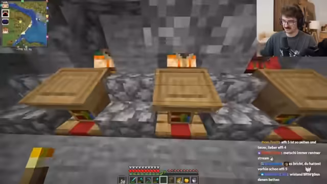 06:04:25Es wird über die optimale Reihenfolge beim Anwenden von Verzauberungsbüchern diskutiert, insbesondere für Spitzhacken. Ein Zuschauer teilt einen Link zu einem Online-Rechner, der die effizienteste Reihenfolge basierend auf Level- und Amboss-Nutzung berechnet. Der Streamer erfährt, dass Unbreaking- und Mending-Bücher zuerst miteinander kombiniert und dann auf das Werkzeug angewendet werden sollten, um Level zu sparen. Zudem wird das Problem angesprochen, dass Schatzkarten in der aktuellen Minecraft-Version keine Kreuze anzeigen, was die Schatzsuche erschwert und frustrierend macht. Der Streamer freut sich über die neue Erkenntnis zur Verzauberungsoptimierung.