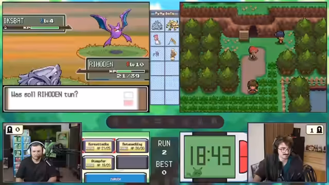 00:36:02Im neuen Run beginnen rumathra und Max in einer anderen Route. Sie erhalten schnell ein legendäres Pokémon-Encounter, eine Entei. Jedoch gestaltet sich das Fangen des legendären Pokémon schwierig, da es Antikraft hat und eine starke Verteidigung aufweist. Nach mehreren vergeblichen Ballwurf-Versuchen und einem Kampf, in dem es sich selbst umbringt, bleibt es ungefangen. Ein technisches Problem mit der Pixel-Genauigkeit der Angriffe führt dazu, dass rumathras Angriffe konsequent danebengehen.