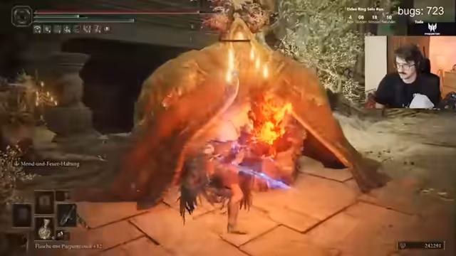 04:45:00Der Streamer kämpft gegen den finalen Boss des Spiels und beschreibt die zweite Phase als härter als die erste. Er diskutiert mit dem Chat über die lore hinter dem Boss und seiner Verbindung zu Mikula. Der Streamer erwähnt, dass er mehrere Versuche braucht, um den Boss zu besiegen. Während des Kampfes entstehen technische Probleme und der Streamer muss mehrere Male respawnen.
