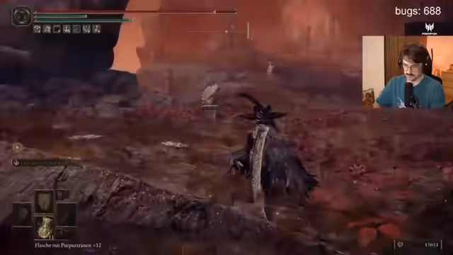 03:00:20Nachdem der Fokus auf dem BER-Desaster lag, wechselt der Stream abrupt zum Gaming. Der Streamer spielt Elden Ring und nennt den Stream 'Elden Ring Gym Stream'. Für jeden neuen Sub macht er während des Spiels eine Liegestütze. Nach kurzer Zeit erkennt er jedoch, dass er die Spielsteuerung vergessen hat. Nach einem Versuch, sich zu orientieren und zu sterben, fokussiert er sich auf einen Bosskampf namens 'Echo der Mutter der Finger'. Er kämpft sich mühsam durch den Kampf, stirbt mehrfach, bis er ihn schließlich nach viel Mühe und dem Erreichen eines höheren Levels besiegen kann.