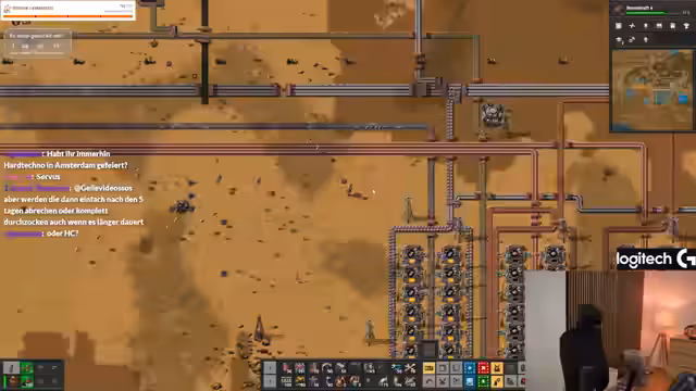 12:49:09Der Streamer startet das Factorio-Spiel, in dem es darum geht, von einem Planeten zu fliehen, nachdem man dort abgestürzt ist. Das Spiel beinhaltet den Abbau von Erzen, das Schmelzen von Metallen und die Herstellung von Kabeln, Kunststoffen und Computerchips. Derzeit werden Mikroprozessoren und Leichtbauteile produziert, um eine Rakete für die Flucht zu bauen. Währenddessen wird der Planet durch die Förderung von Ressourcen und den Bau von Atomkraftwerken stark verschmutzt, was die Aliens anlockt. Zur Verteidigung wurden gigantische Verteidigungsanlagen mit Flammenwerfern und Radaren errichtet, die von kleinen Reparaturrobotern instand gehalten werden. Die Basis ist in alle Richtungen gesichert, und es werden riesige Fabriken gebaut, um die notwendigen Materialien zu produzieren und zu forschen. Das Ziel ist es, genügend Ressourcen für den Bau der Rakete und die Flucht vom Planeten zu sammeln. Es wird überlegt, die Kupferproduktion durch erneutes Schmelzen zu optimieren und die Produktion von schwarzen Tränken für die Forschung wiederaufzunehmen. Die erste goldene Forschung soll gestartet werden, wobei Arbeitsrobotergeschwindigkeit und raffinierte entzündliche Stoffe in Betracht gezogen werden. Es wird diskutiert, wann der Zeitpunkt für den Start der Rakete gekommen ist und wie der weiße Trank, der nur im Weltall erhältlich ist, beschafft werden kann. Der Bau eines Raketensilos in der Mitte der beiden Basen wird als lohnenswert erachtet.