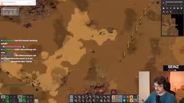 13:32:17Es wird über den gemeinsamen Chat diskutiert und wie gut er funktioniert. Es wird gefragt, wie oft der Streamer bei Maxim Stream war, der reicher ist als er. Es wird überlegt, wer reicher ist als Max, und es werden Beispiele genannt. Es wird festgestellt, dass der Streamer nicht 5-stellig im Monat verdient, sondern nur im Dezember 6-stellig. Der Streamer hat sich durch die Basis gequetscht und dabei etwas kaputt gemacht, aber seine Bots haben es wieder aufgebaut. Es wird vereinbart, alles im Osten zu klären, auch das kleine Fleckchen hier unten. Die Leute wollen nicht mehr übergärtnern. Der Streamer hat keine Munition mehr und wird von hinten angegriffen. Es wird festgestellt, dass die Aliens schwer zu erkennen sind, weil sie so klein sind. Der Streamer bekommt Munition, einen Kernreaktor, Batterien und ein Radar von seinem Mitspieler. Es wird gefragt, warum der Streamer nie sowas wie Fortnite gespielt hat, und er antwortet, dass es nicht sein Game ist. Es wird diskutiert, wie der tragbare Kernreaktor funktioniert und ob man Akkus benötigt.
