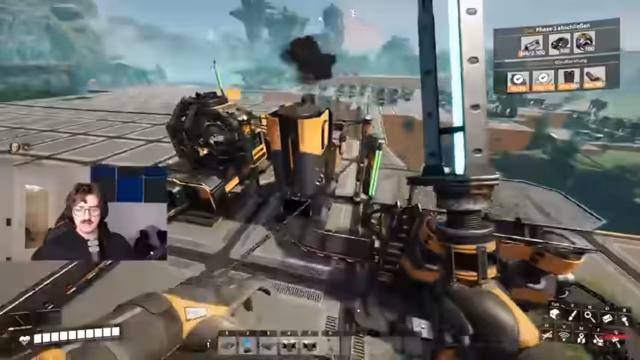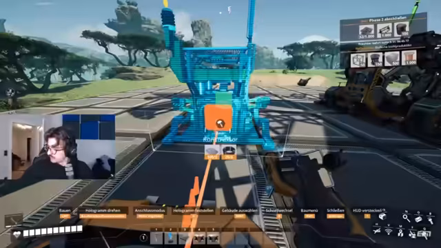 02:21:25Die Spieler starten das Montageprojekt für den Weltraumlift und präsentieren die beeindruckende Konstruktion. Es gibt eine Diskussion über die strategische Vorgehensweise auf der Karte: Soll dezentralisiert gebaut und nur die Endprodukte in die Mitte transportiert werden, oder soll alles Erz zentralisiert gesammelt werden? Der Weltraumlift selbst wird in Phasen gebaut. Die erste Phase, die gerade abgeschlossen wird, erfordert 50 intelligente Beschichtungen, die aus den zuvor hergestellten verstärkten Platten und Rotoren im Fabrikator gefertigt werden. Dieser Bau stellt das große, übergeordnete Ziel der LAN-Party dar.