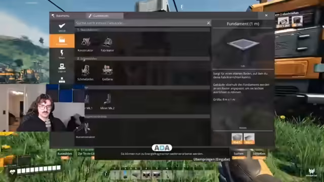 00:06:20Nach dem erfolgreichen Einloggen ins Spiel planen die Spieler ihre Basisstrategie. Sie entscheiden sich, ihre erste Anlage direkt im Grasium zu bauen, obwohl die Ressourcen dort als suboptimal gelten, um später zu besseren Quellen umzuziehen. Der erste Schritt ist der Bau des Hubs, der als zentraler Ausgangspunkt für das Logistiknetz dient. Parallel wird die Werkbank aufgebaut, um erste Ressourcen wie Eisen und Kupfer von Hand herzustellen.