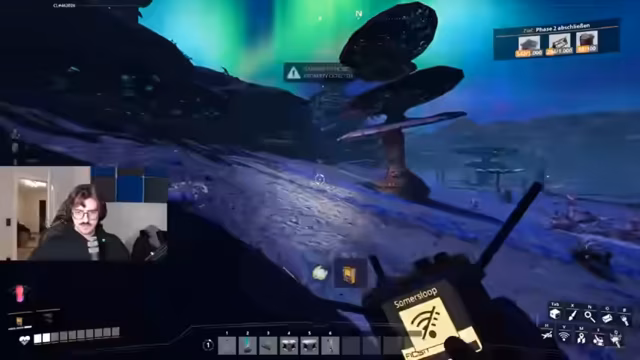 08:18:04Nachdem eine Forschung abgeschlossen wurde, entdeckt das Team eine neue, feindliche Insel, was zu ersten Panikmomenten führt. Der erste Tod im Stream ereignet sich durch eine Spinne. Es wird der Plan gefasst, immer einmal zu rerollen und bei schlechten Ergebnissen stehen zu bleiben. Die Spieler fühlen sich ohne Jetpack und gutes Equipment auf der feindlichen Insel unwohl und bemerken, dass die Planetenschwere den Schwierigkeitsgrad erheblich erhöht hat.