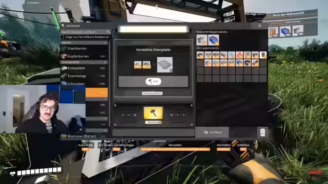 03:38:32Nach dem Scannen weiterer Festplatten stehen den Spielern neue, potenziell bessere Rezepte zur Auswahl, darunter Stahlstrauben und alternative Methoden zur Herstellung von Eisenplatten. Nach sorgfältiger Abwägung im Chat und eigener Analyse entscheiden sich die Streamer für das Rezept der Stahlstrauben, da dieses als erheblicher Fortschritt gilt und die Effizienz der Stahlproduktion drastisch erhöhen kann.