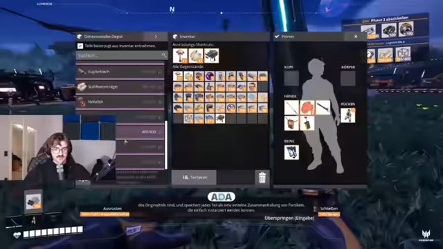 04:09:51Während des Spiels werden seltene Gegenstände wie eine Mercer-Sphäre und ein Summersloop aufgesammelt. Um diese und andere wichtige Ressourcen besser zu verwalten, wird ein sogenanntes „dimensionales Depot“ eingeführt. Dieses Depot ermöglicht es, bestimmte Materialien zentral zu lagern und von überall im Inventar darauf zuzugreifen, was die Logistik erheblich vereinfacht.
