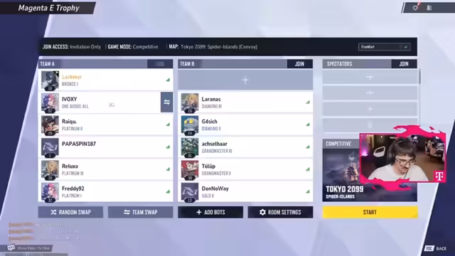 00:00:00Der Stream beginnt mit der technischen Vorbereitung für ein geplantes Team-Match. Nach anfänglichen Verzögerungen und Problemen bei der Einladung in den Twitch-Call, gelingt es dem Team, eine funktionierende Lobby zu erstellen. Es wird eine Kette von Einladungen gestartet, um alle notwendigen Mitspieler und Freunde hinzuzufügen, während die Streamer durch technische Barrieren wie die deutsche Spracheinstellung eines PCs hindurchmüssen. Nachdem alle Mitglieder des Teams im Call und der Spiellobby sind, werden die Spielfiguren ausgewählt und die erste Karte freigeschaltet, um das Spiel zu beginnen.