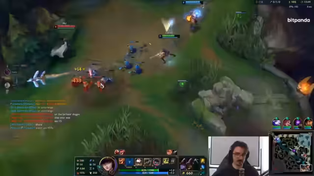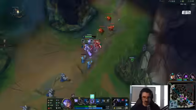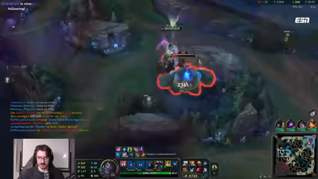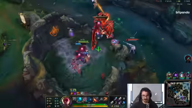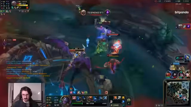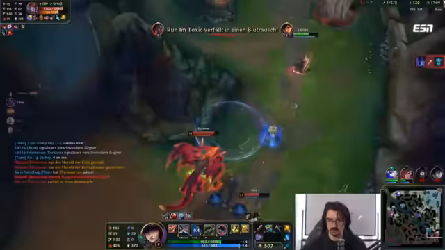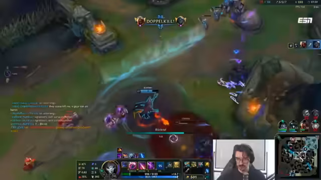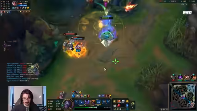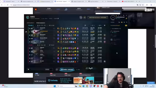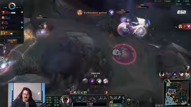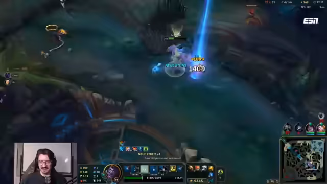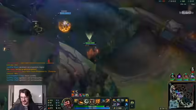 07:11:59Nach einer Reihe von Niederlagen gelingt dem Streamer-Team ein wichtiger Sieg. Der Streamer ist von einem spektakulären Play seines Mitspielers begeistert und beschreibt die Situation als geisteskrank und insan. Sein Mitspieler, der als weniger eingestuft wurde, trug maßgeblich zum Sieg bei, indem er die gegnerische Lissandra eliminierte. Der Streamer bedankt sich ausdrücklich und würdigt die Leistung. Trotz des Sieges fühlt sich der Streamer selbst in dem Spiel schwach und untalentiert.