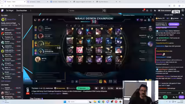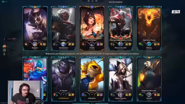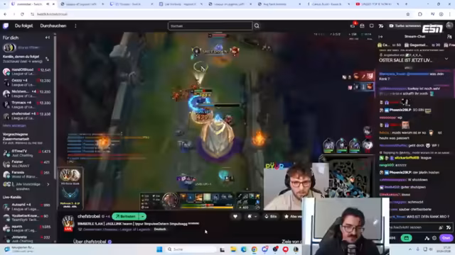 01:20:20In einem späteren Spiel ist Max unfreiwillig als Top-Lander gefüllt und erhält einen Lucian-Gegner, dessen Verhalten ihn wütend macht. Er beschwert sich über das Matchmaking von Riot Games, das ihm seiner Meinung nach Bronze-ähnliche Gegner gegen Emerald-Spieler zuweist. Der Stre eskaliert, als Chef Strobel versucht, Max zu erklären, wie man eine Top-Lane einfriert, was Max für dumm hält und ihn wütend zurückweist. Trotz der negativen Atmosphäre gelingt Max ein Solo-Kill gegen den Lucian, was kurzzeitig die Moral hebt, doch die grundlegende Frustration über die unfaire Lobby bleibt bestehen.