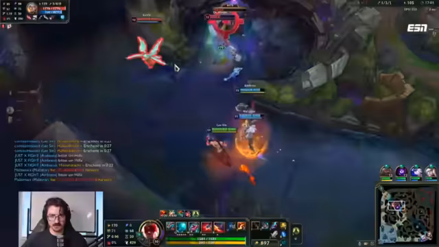09:51:26Zu Beginn des Abschnitts agieren die Spieler koordiniert in der Mitte des Spielfelds, doch es kommt zu taktischen Fehlern und Missverständnissen. Ein unbedachter Vorstoß in die feindliche Mitte führt zu einem sehr deepen und riskanten Teamfight, der für alle Beteiligten schlecht ausgeht. Der Streaming-Kommentator kritisiert die Positionierung und mahnt, nicht blind in die Kämpfe zu ziehen, sondern die Situation besser zu lesen. Besonders der Jungle- und Top-Lane-Bereich steht im Fokus, wo gegnerische Bewegungen und eine schlechte Mananutzung zu Nachteilen führen.