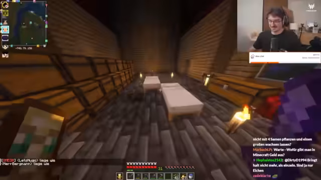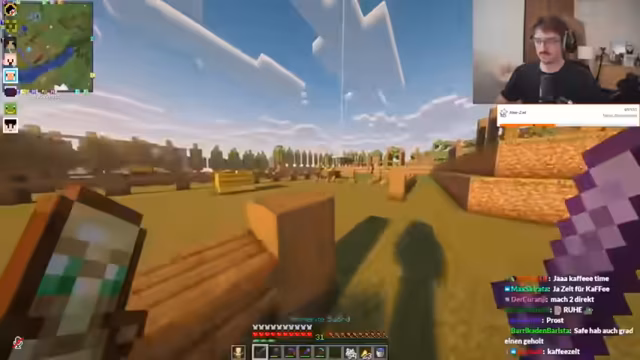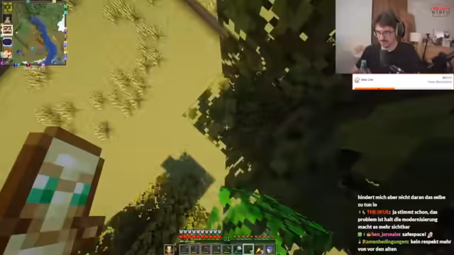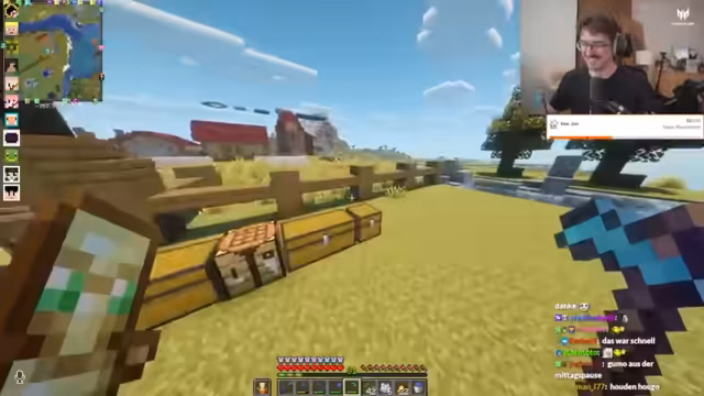 06:03:41Der Streamer ist mit dem Bau eines Hofes beschäftigt und erwähnt, dass er noch Holz fährt und Bäume farmen muss. Er stellt fest, dass es nicht mehr viele Blätter für den Bau braucht und dass er am Vortag schon einige vorgebaut hat. Dabei gibt es auch humorvolle Auseinandersetzungen über das Aufräumen von Zimmern und vergleichbare Situationen aus der Kindheit. Streamer und Chat interagieren bei diesen Bauarbeiten und es gibt Diskussionen über die Effizienz und das Vorgehen beim Bau.