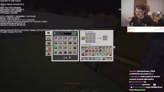 04:58:33Die Streamer sammeln intensiv Ressourcen in Minecraft, insbesondere in den Trial Chambers. Sie arbeiten zusammen, um ihre Inventare optimal zu füllen und möglichst viel mitzunehmen. Dabei verlieren sie sich kurzzeitig in den verwirrenden Kammern, finden aber wieder zueinander und planen den weiteren Weg durch die komplexe Struktur. Der Fokus liegt auf effizientem Sammeln von wertvollen Materialien wie Diamanten und Eisen, wobei sie auch über Spielmechaniken wie Windburst-Hämmer diskutieren.