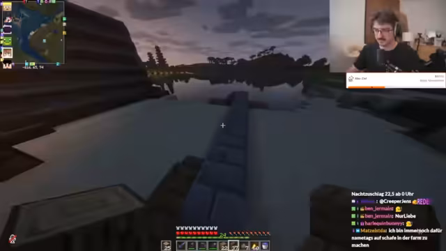 06:00:02Die Streamer beschäftigen sich mit der Minecraft-Banner-Kunst für den Finish ihrer Bauprojekte. Nach Ratschlägen von Chat-Mitgliedern erklären sie die Grundlagen von Banner-Erstellung mit dem Loom-Block und Farbstoffen. Gleichzeitig werden technische Aspekte des Spiels wie das Spawn-System von Phantomen und der Schlaf-Counter diskutiert, während sie weiter an ihren Projekten arbeiten.