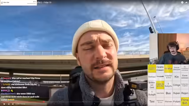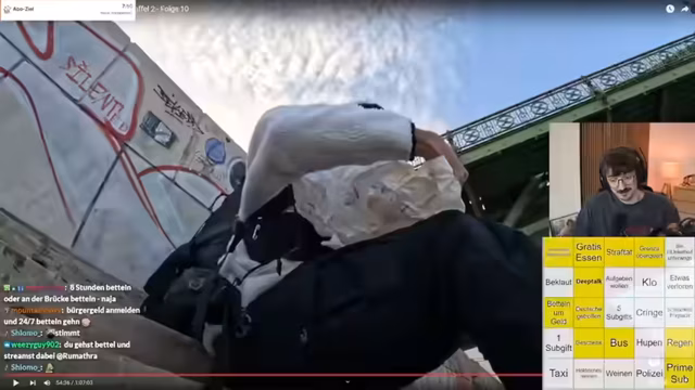 02:44:52Die Gruppe reist über die serbisch-bulgarische Grenze und gelangt so zurück in die EU. Der Streamer ist motiviert, wieder zu betteln, und erreicht auf einer Brücke schnell 90 Euro. Er vergleicht den Verdienst positiv mit dem von Prime-Subs und Minijobs. Die Interaktion mit einem deutschen Paar namens Roswitha und Werner wird als besonders positiv und motivierend beschrieben.