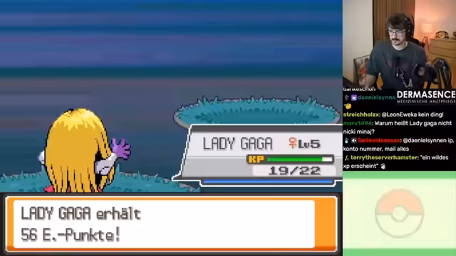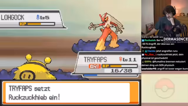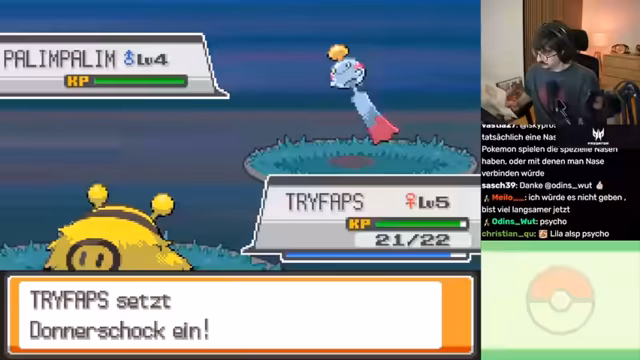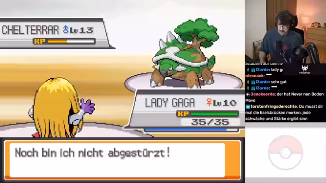 05:46:46Der Streamer setzt seine Nuzlock-Challenge fort, nachdem er sein Pokémon im Pokémon-Center geheilt hat. Er versucht, ein neues Pokémon auf Route 30 zu fangen, aber auch dieser Versuch scheitert. Sein neues Pokémon stirbt, nachdem er es nur einmal angreifen kann, was die niedrigen Lebenspunkte und die zufälligen Items im Spiel deutlich macht.