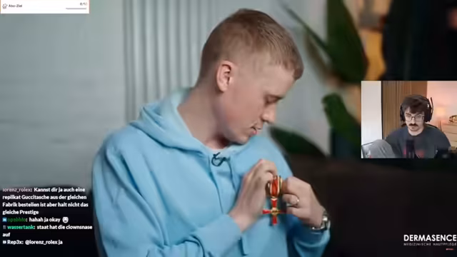 00:08:44Im Hauptteil des Streams führt der Streamer einen Prank durch, bei dem er versucht, sich ein Bundesverdienstkreuz zu besorgen. Nachdem er die offizielle Webseite des Herstellers kontaktiert und nur einen handelsüblichen Zeitungsartikel als Nachweis vorgelegt hat, erhält er tatsächlich eine Auftragsbestätigung. Kurze Zeit später wird ein Nachbau des Bundesverdienstkreuzes geliefert, was den Streamer verärgert und ihn dazu bringt, es symbolisch beim Bundespräsidenten abgeben zu wollen.