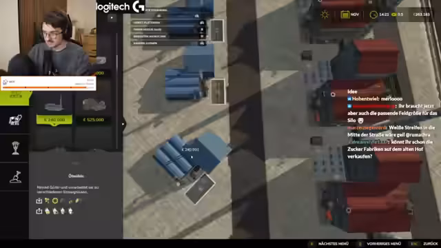00:07:09Der Stream konzentriert sich hauptsächlich auf das Spielen von Landwirtschaftssimulator. Das Team hat durch Zuckerrübenernten über 2,5 Millionen virtualer Währung verdient und plant, dies durch den Bau weiterer Fabriken und den Verkauf von Küstenkiefern auszubauen. Eine entscheidende Herausforderung ist die Kapazitätsgrenze bei der Baumplantage. Parallel dazu wird die Planung für einen größeren Hof auf der Map diskutiert, um den wachsenden Fuhrpark unterzubringen. Es bestehen erhebliche Zweifel, ob die dafür notwendigen finanziellen Mittel vorhanden sind.