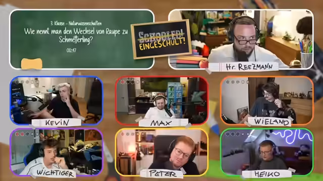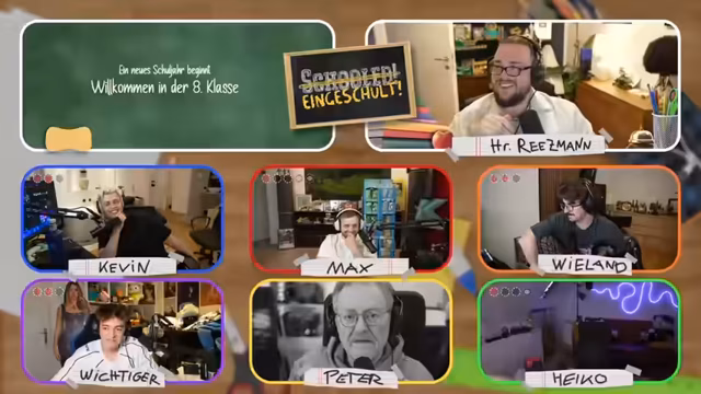 03:33:02Der Livestream beginnt mit lockeren Vorab-Unterhaltungen der Teilnehmer über verschiedene Themen, darunter ein Urlaubsvideo mit einem Wasserscooter und ein humorvoller Vergleich der Altersgruppen. Anschließend wird das Quiz-Format "Eingeschult" offiziell eingeführt. Das Ziel ist es, spielerisch das Schulwissen von Klasse 1 bis 13 zu testen, mit Fragen in den Fächern Mathe, Sachunterricht, Naturwissenschaften und Deutsch. Für falsche Antworten verlieren die Teilnehmer ein Leben, wobei insgesamt drei Leben zur Verfügung stehen. Der Gewinner am Ende kann sich im Rapid-Fire-System Subs erspielen.
