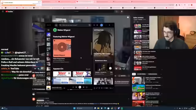 03:00:49Der Streamer sucht weiterhin nach einem Platz in einer Spotify Premium Family und freut sich über Nachrichten von Zuschauern, die ihm helfen wollen. Es wird über verschiedene Streaming-Dienste gesprochen, darunter Netflix, Prime, Disney Plus und Wow. Der Streamer findet den Song von Walter Wiegand und ist begeistert, dass dieser Mann mit halber Million Views noch am Leben ist und zur richtigen Zeit in der richtigen Fendi-Doku war. Er lobt Wiegands Macherqualitäten und dass er immer noch am Ackern ist und sogar Boruto synchronisiert. Das Musikvideo wird als geisteskrank und verrückt bezeichnet. Der Streamer zitiert aus einem Interview mit Wiegand über seine Beziehung zu seiner Frau und den Altersunterschied, den er nie als Problem gesehen habe.