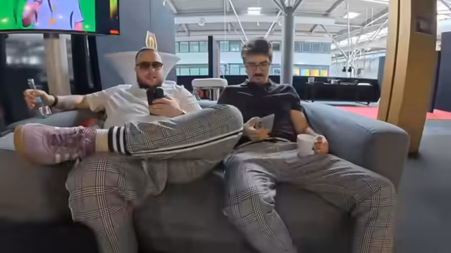 00:32:42Vor dem Spiel findet eine formelle Regiebesprechung in der Presidential Suite statt. Hier werden die letzten Details für den Stream geklärt. Der Streamer ist sich der Tatsache bewusst, dass sein Team als Außenseiter mit 0:3 Siegen und ohne Secret Cards gegen das favorisierte Vice Versa Team antritt. Trotzdem ist er optimistisch, denn er vertraut seiner Schusstärke und ist der festen Überzeugung, dass die Gegner die Elfmeter nicht halten können.
