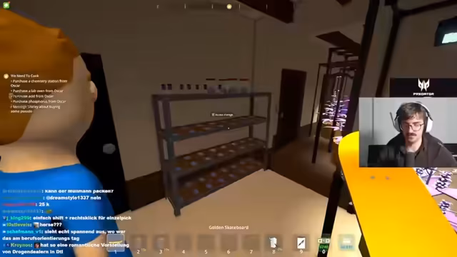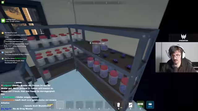 03:02:58Nach dem Kauf eines neuen Geschäfts und dem Einstellen eines Chemikers wird die Produktion auf eine neue, hochwirksame Droge namens Purple Queef umgestellt. Dieser Prozess wird automatisiert, indem Botaniker das Ausgangsmaterial anweisen, ein Chemiker mischt und der Streamer die fertigen Produkte abpackt. Das Ziel ist, diese neue, süchtig machende Droge profitabler zu verkaufen als die alte Sorte.