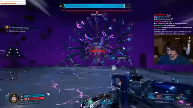 03:55:39Der Kampf gegen einen mächtigen Feind wird fortgesetzt. Streamer arbeitet daran, seinen Build zu optimieren, insbesondere im Hinblick auf die Ausnutzung des 'verfangen'-Mechanismus. Er ist sich unsicher über die exakten Auswirkungen eines bestimmten Mods und sammelt Informationen über die elementaren Schwächen der Gegner, um seine Waffenauswahl anzupassen und den Kampf effizienter zu gestalten.