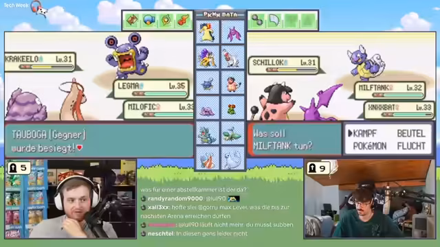 02:09:13Der Streamer bestimmt das neue Level-Cap vor Arena 7 und diskutiert die Stärken von Albus und das Leveln von Pokémon. Ein Controller-Disconnect führt zu leiserem Ton, was die aktuelle Run gefährdet. Im Team wird über den Tausch von Pokémon wie Zabex und Milfgift entschieden, wobei die momentane Stärke und das Level im Vordergrund stehen. Garados wird für den Kampf eingewechselt, während die Auswahl der passenden Attacken und das Verlernen alter Moves wie Zerschneider diskutiert werden.