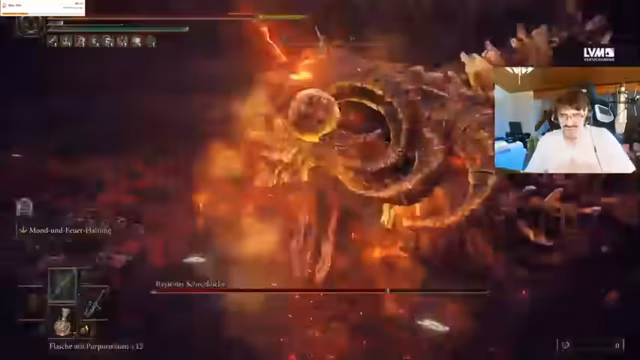 05:00:29Der Streamer unterbricht das Gameplay für eine Ankündigung über seinen Partner 'LVM Gaming'. Er erklärt, dass es eine Aktion gibt, bei der Zuschauer durch das Einlösen von Gutscheincodes die Chance auf PC-Gewinne und Gamescom-Tickets haben. Anschließend kündigt er den nächsten Bosskampf gegen Marlenia an und fragt die Chat nach einer Prognose, wie lange der Kampf dauern könnte. Zum Abschluss des Streams gibt er bekannt, dass der Stream für heute beendet ist, aber möglicherweise noch am selben Abend ein weiteres Stream-Event rund um Max Marlenia stattfinden könnte.