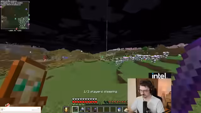 03:07:07Streamer entdeckt zufällig Doppelkiste mit Bambusblöcken vor seinem Nether-Portal, vermutlich von Max. Streamer fragt nach nachhaltiger Grasfarm und Lichtbedarf für Schafe. Server Performance wird als Thema erwähnt: TPS sinkt bei Aktivitäten. Streamer sucht nach Ursachen für Performance-Probleme auf dem Server.