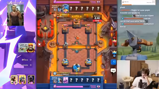 06:26:14Der Streamer spielt intensiv Clash Royale und analysiert seine Kartenauswahl und Spielstrategie. Er diskutiert verschiedene Decks wie das Poison Cycle Deck und den Evo-Ofen, die er als besonders stark empfindet. Er ärgert sich über Missplays und strategische Fehler, besonders bei der Platzierung von Karten wie dem Ofen und den Inferno Dragon. Der Streamer hebt hervor, dass er für die aktuelle Challenge einen persönlichen Rekord von 8 Solo-Siegen aufgestellt hat und zeigt sich beeindruckt von der aktuellen Stärke bestimmter Karten.