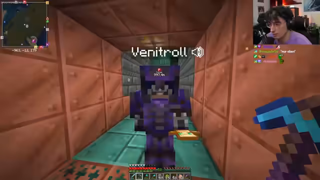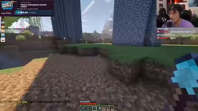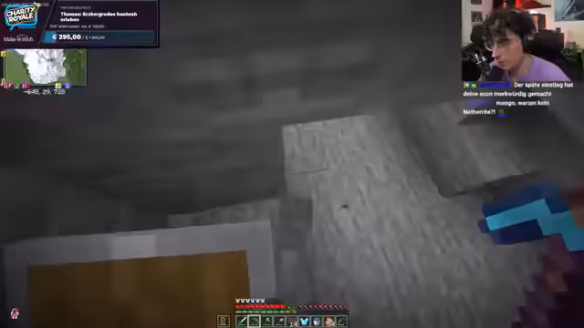 01:06:27Der Streamer beginnt im Spiel mit der Suche nach Ressourcen. Er erkundet Höhlen, um Eisen und eventuell Diamanten zu farmen, und stößt dabei auf eine besonders große Eisenader. Die Erkundung führt ihn auch in den Deep Dark, wo er vorsichtig ist, um dem Warden zu entgehen. Währenddessen werden weitere Spenden für die Charity-Aktion verzeichnet, deren Namen in einem Turm verewigt werden sollen.