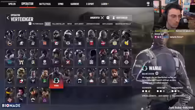 01:54:53Der Streamer diskutiert über Sensibilitätseinstellungen im Spiel und stellt fest, dass er meistens Low Sense spielt. Er zeigt praktische Beispiele für Spielzüge wie die Nutzung von Tunneln und die Platzierung von Fallen durch Operatoren wie Kapkan und Lion. Dabei werden Strategien für effektives Fallenlegen und die Verteidigung vonObjekten erklärt, was dem Zuschauer Einblicke in taktische Entscheidungen im Spiel gibt.
