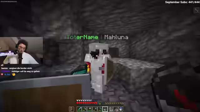 02:16:01Nachdem die anfängliche Nahrungsversorgung durch das Töten von Schafen gesichert ist, begibt sich das Team tiefer in die Erde, um auf Eisen zu schürfen. Dies birgt erhebliche Risiken durch Monsterspawner, insbesondere Zombies, und die ständige Bedrohung durch die unsichtbare Grenze (Border). Es wird deutlich, wie wertvoll jedes gefundene Eisen ist, um Ausrüstung und Waffen herzustellen, um den anstehenden PvP-Kämpfen gewachsen zu sein.