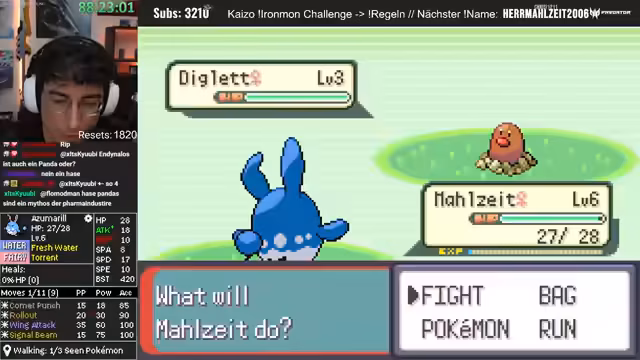 06:29:42Ein spezifischer Kampf gegen ein Pokémon mit Level 10 wird detailliert analysiert. Obwohl das Gegner-Pokémon nur schwache Stats aufweist, droht der Run aufgrund von mehreren kritischen Treffern zu scheitern. Der Streamer ist sich der Risiken bei der Jagd nach einem starken Pokémon bewusst und diskutiert die Trade-offs zwischen der Stärke der eigenen Attacken und der Verteidigung. Der Kampf wird letztlich knapp gewonnen, was die Gefahr und den Zufallsfaktor im Iron-Man-Modus verdeutlicht.