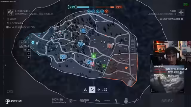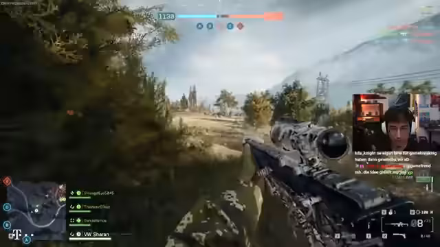 07:30:59Nach einem Pokémon-Run, der durch einen Fehler bei der Flucht vor einem wilden Pokémon beendet wurde, wechselt der Streamer zum Spiel Battlefield. Die anfängliche Spielsituation ist angespannt, da das eigene Team nur noch über eine geringe Punktzahl verfügt. Der Streamer diskutiert taktische Entscheidungen, darunter die Wahl von Waffenaufsätzen und die Nutzung von Gadgets, um die vorteilhafte Position zu halten und einen Sieg zu erzielen.