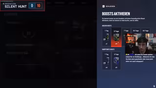 01:29:42Die genauen Regeln der Challenge werden detailliert erklärt. Das Spiel Rainbow Six Siege ist seit kurzem kostenlos spielbar und die neue Season 'Silent Hunt' bringt einen Cross-Over Operator namens Solid Snake mit. Für das heute anstehende Match gilt ein fester Punktewert von sechs pro Runde für die gesamte Mannschaft. Die Spieler können diese Punkte für den Kauf von Waffen, Sekundärwaffen und Gadgets ausgeben. Zusätzlich gibt es spezifische Challenges, die das Team gemeinsam lösen muss, wie das Spotten aller gegnerischen Operator mit Drohnen oder ein erfolgreicher Rush-Kill. Der Streamer betont die Wichtigkeit der Punktewahl pro Runde und stellt klar, dass die Kommunikation während des Spiels ohne Voice Chat über Facecam-Gesten erfolgen muss. Der Fokus liegt auf dem gemeinsamen Erreichen der Challenges, um die Zuschauerpreise zu sichern.