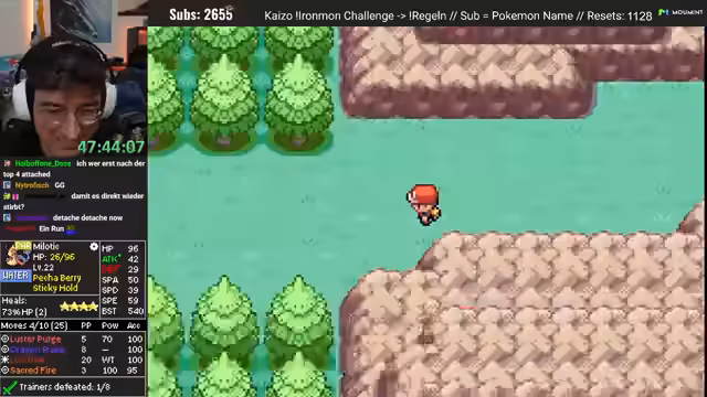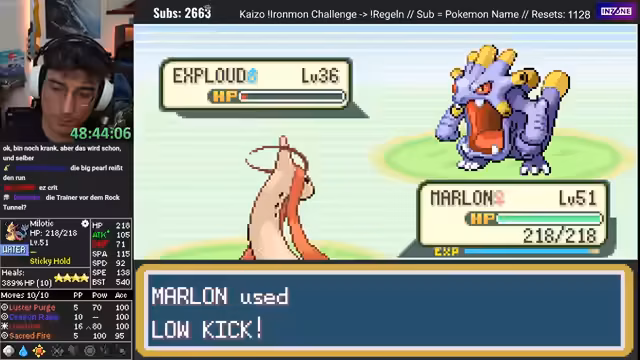 00:29:41Der Streamer reflektiert über die aktuelle Durststrecke des Projekts, die bereits seit rund 400 Runs anhält und erwähnt, dass die Runs zwar spannend sind, aber oft ohne nennenswerte statistische oder taktische Fortschritte verlaufen. Im weiteren Verlauf des Runs wird ein Melotic, ein Wasser-Pokémon mit der Fähigkeit 'Feuerresistenz', als starkes und vielversprechendes Teammitglied identifiziert. Trotz anfänglicher Schwierigkeiten und hoher Verluste an Hit Points etabliert sich Melotic als zentrale Säule des Teams und gibt dem Run neue Hoffnung.